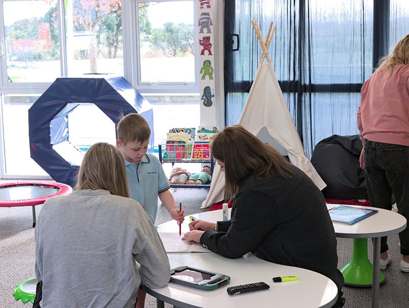 Based onsite at Donovan Primary School, students have the best of both worlds. Being enrolled at Ruru Specialist school and attending a host school allows students to access supports like therapy, specialist teachers, small group learning, adapted curriculum, and up-to-date technology while also allowing students to wear the uniform of the host school, and to interact wherever the student is comfortable to do so, this can be in some classes, attending the assembly, playing sports, participating in lunchtime games and social interactions.
